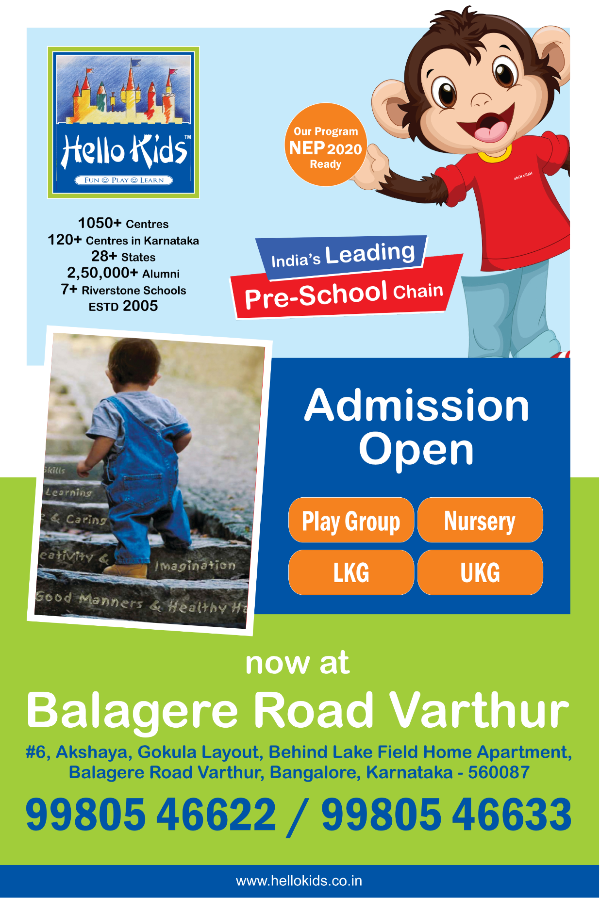Welcome to Hello Kids Happy Wings Play School, a nurturing space where learning feels like home. We provide a safe, caring, and thoughtfully designed environment that supports your child’s early development through fun, activity-based learning. Our curriculum focuses on creativity, social skills, and holistic growth, ensuring every child learns with joy and confidence. With dedicated educators and engaging programs, including our exciting Summer Camp, we make every day a new adventure for your little ones. ✨ Give your child the perfect start to their learning journey with us!